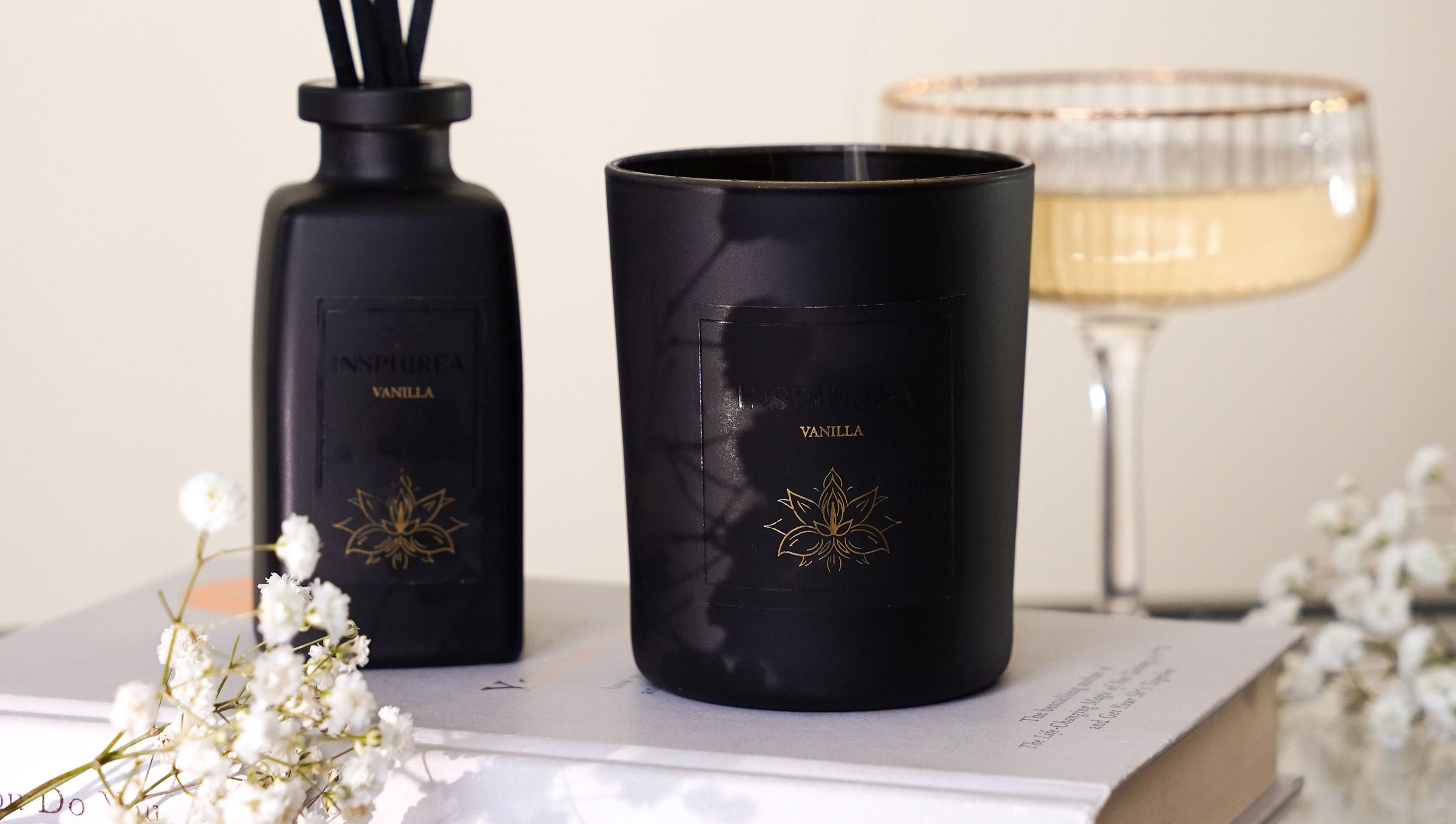 Kaars: zonnebloemwas, parfumoliën (vanille, musk).