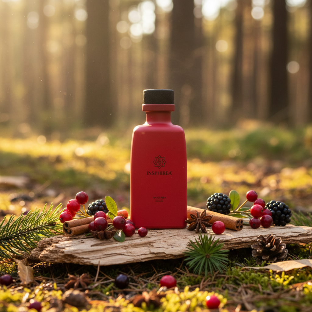 Plantaardig oplosmiddel, parfumoliën (sandalwood, pine, spice, woody notes)